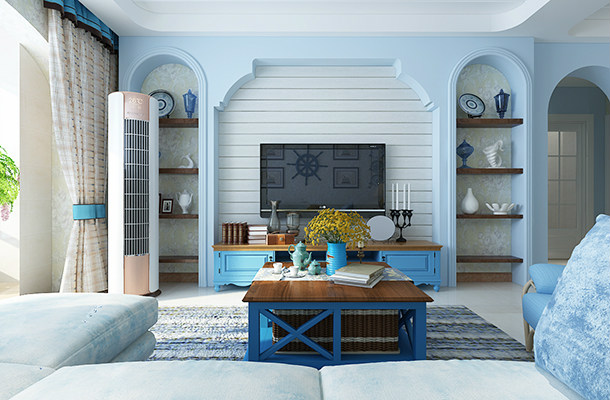 将海洋元素应用到家居设计中,给人自然浪漫的感觉。在造型上,广泛运用拱门与半拱门,给人延伸般的透视感。