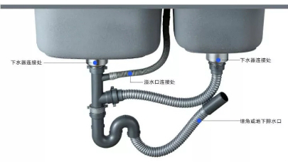 ③洗菜盆的位置:洗菜盆要靠近主排水管这样才能尽可能的减少排水堵塞的可能;一般进户水阀,开发商都会预留在厨房,左热右冷间距在20cm左右。