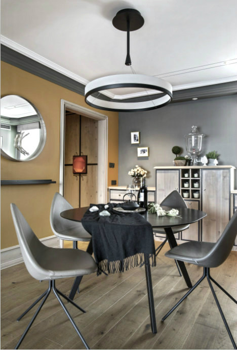 餐厅不再功能单一,美观实用,冲上合理的构成工艺。餐厅有浓厚的艺术感和文化气息。做旧的餐边柜,摆件贴近自然,设计师用细腻的手法拉近了家人之间的距离。最让我感到以外的则是设计师大胆的运用大面积色块。疯狂钜惠,无忧新装活动开启,享10重豪礼→
