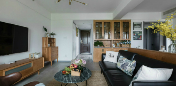 进入户门后便可直达客厅。其实这套不规则户型是经过了很多环节的改造,无论是新建墙体,还是做的假梁,都是为了将空间百分之百的利用起来。可以看到边柜、高立柜摆放严丝合缝,这就需要设计师对于尺寸的精准把握。深蓝色第6届“双11家装狂欢节”开启,抢先预定→