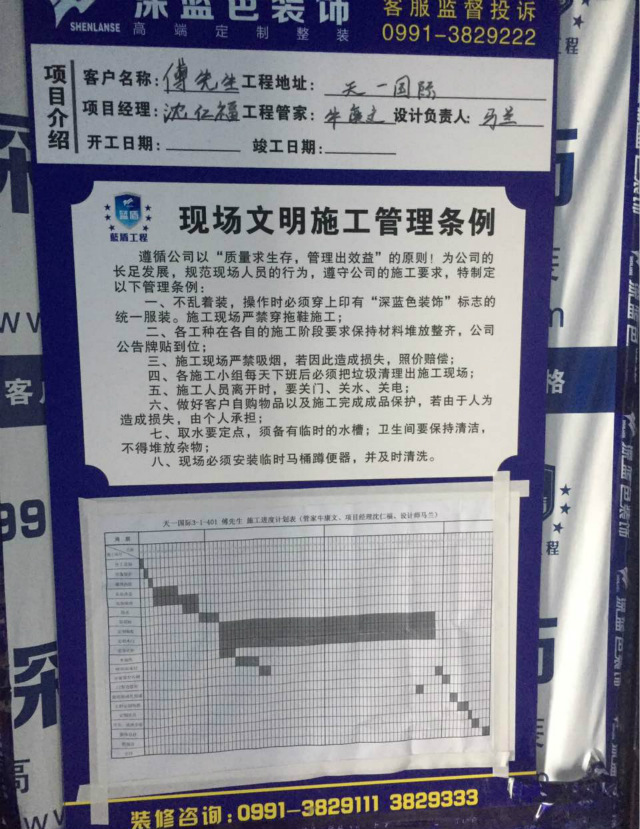 深蓝色装饰首创乌鲁木齐市施工工艺标准化“蓝盾工程”,并且拥有多支强大的施工团队,他们对于问题的处理经验丰富,基本做到零投诉。