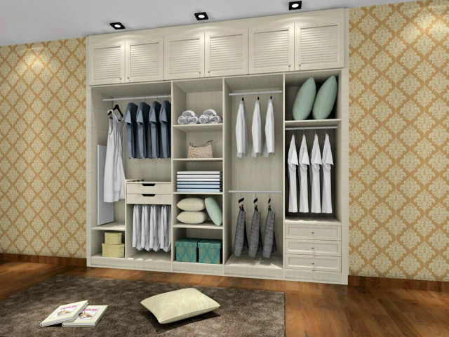 这一点一定要和定制衣柜公司事先说明。是单纯存放衣物还是兼有“杂货”储物室功能?要不要放化妆品、配饰、被褥、鞋帽等物件?考虑这一点之后接下来就要考虑放多少了。