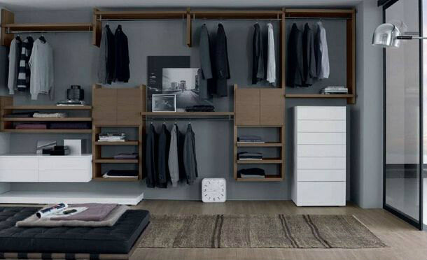 四种空间划分,具体的摆放位置可咨询专业的设计师,他们会根据业主自身的生活习惯和家庭成员的身高来制定合理的衣柜定制方案。快试试吧。