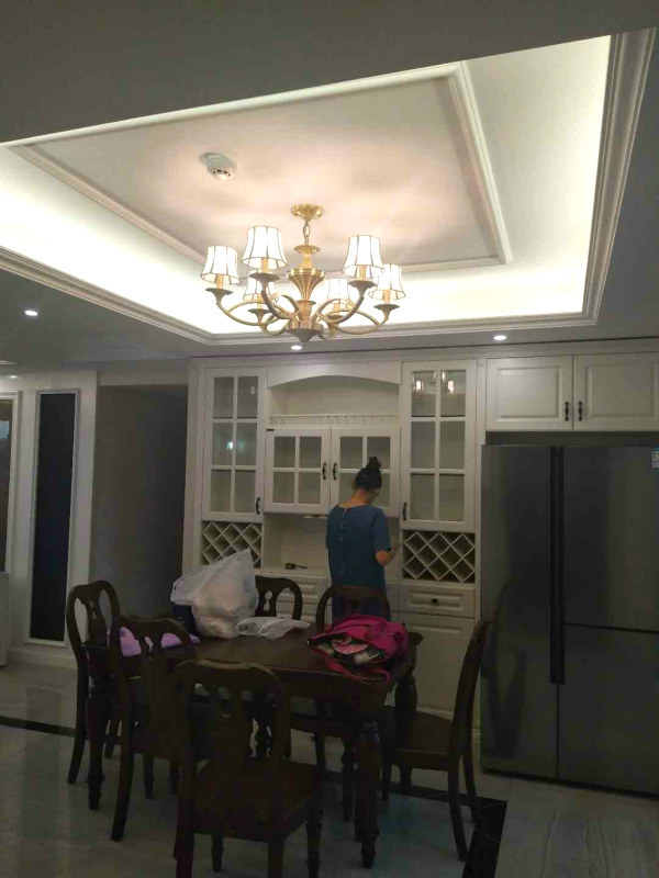 加了顶封板和侧封板的柜子看起来比较美观,而且没有卫生死角,打扫起来非常的方便,建议大家把顶封板和侧封板做上。地板也是我请自选的,浅色地板总能带给人好心情。顶部没有很复杂,就加了一圈石膏线条。戳这里,立即咨询详细信息→