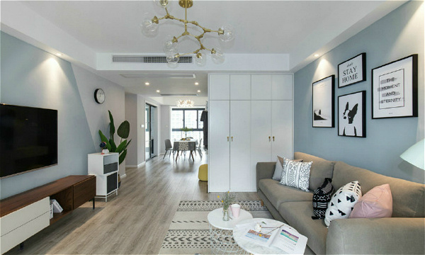 客厅注重线条的设计,它代表了北欧风时尚、前沿、精美、实用的特点。客厅做了一圈吊顶,厚度大概在10厘米左右,之所以这么苛求是因为这户业主不是一个随便的人。分子灯在大多数北欧风种都很常见,再搭配家具和软装,效果立马显现。第一届“匠心杯”开赛啦!十重豪礼领取入口,戳这里→
