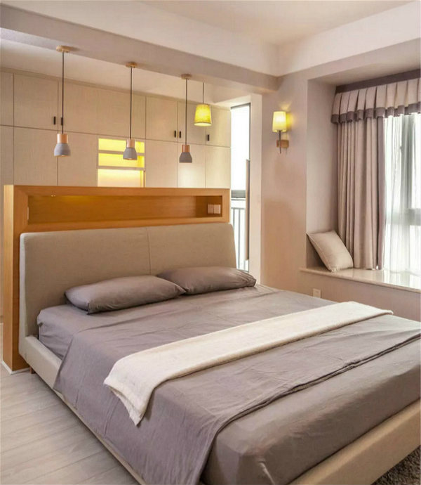 主卧颇具亮点,内嵌式飘窗,亮面大理石坐台,增加了采光,是的主卧更加开阔自然。窗体位于中间位置,床头靠后区域则是衣柜,这种设计方式还是比较少见的。突破原有的限制才会达到意想不到的效果。乌市业主都在测,快来看看你家最适合什么风格→