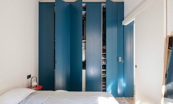 主卧对开门的衣柜,只有一种海蓝色,关上所有柜门宛如一个整体。并不是颜色越丰富越能够凸显温馨的气氛。谷仓门给人一种浪漫的情调,颜色恰好是它最出众的地方。深蓝色装饰全年最大一次优惠活动,抢先预定→