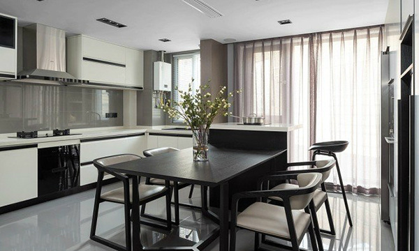 开放式厨房比较适合西方人的生活,但我平常就喜欢烹饪一些冷餐,也比较健康。餐桌椅有种新中式的感觉。我个人感觉还是定制的餐桌椅比较合适,尺寸也能够对的上,而且样式也有很多的选择可能。深蓝色装饰全年最大一次优惠活动,抢先预定→
