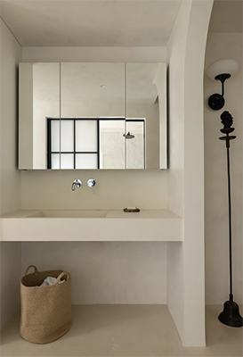 浴室柜可以考虑有侧柜的设计,对于小卫生间收纳来说,绝对很实用。除了悬空浴室柜之外,还有一种方法,就是干脆不要浴室柜,直接挂台盆,让出不少地面空间。