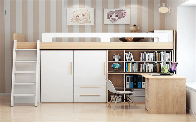 2、小户型家庭,近年来很流行在孩子的房间装榻榻米,兼顾储物、睡眠等功能,当然还能延伸出学习区,就算你家房间只有5㎡,照样能装出个精致空间。小户型在收纳区本身就是硬伤,如果东西没处放,可利用好墙面空间,书桌的上层可添置书架。装修测价系统快捷入口